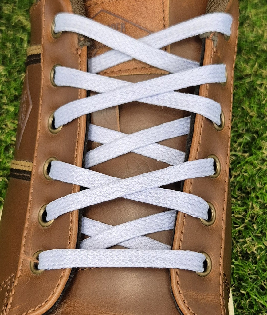 Strong flat waxed cotton shoelaces 5/6 mm wide, excellent replacement laces for a wide range of casual and fashion shoes.